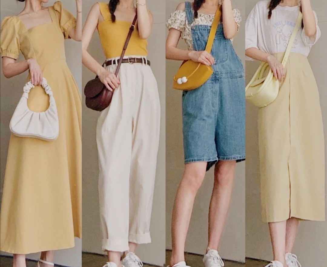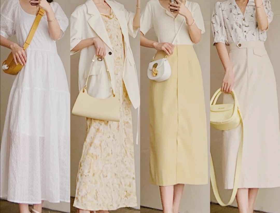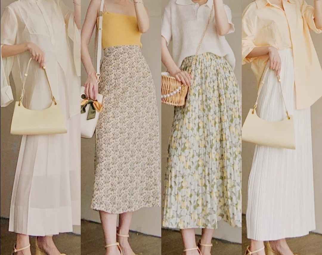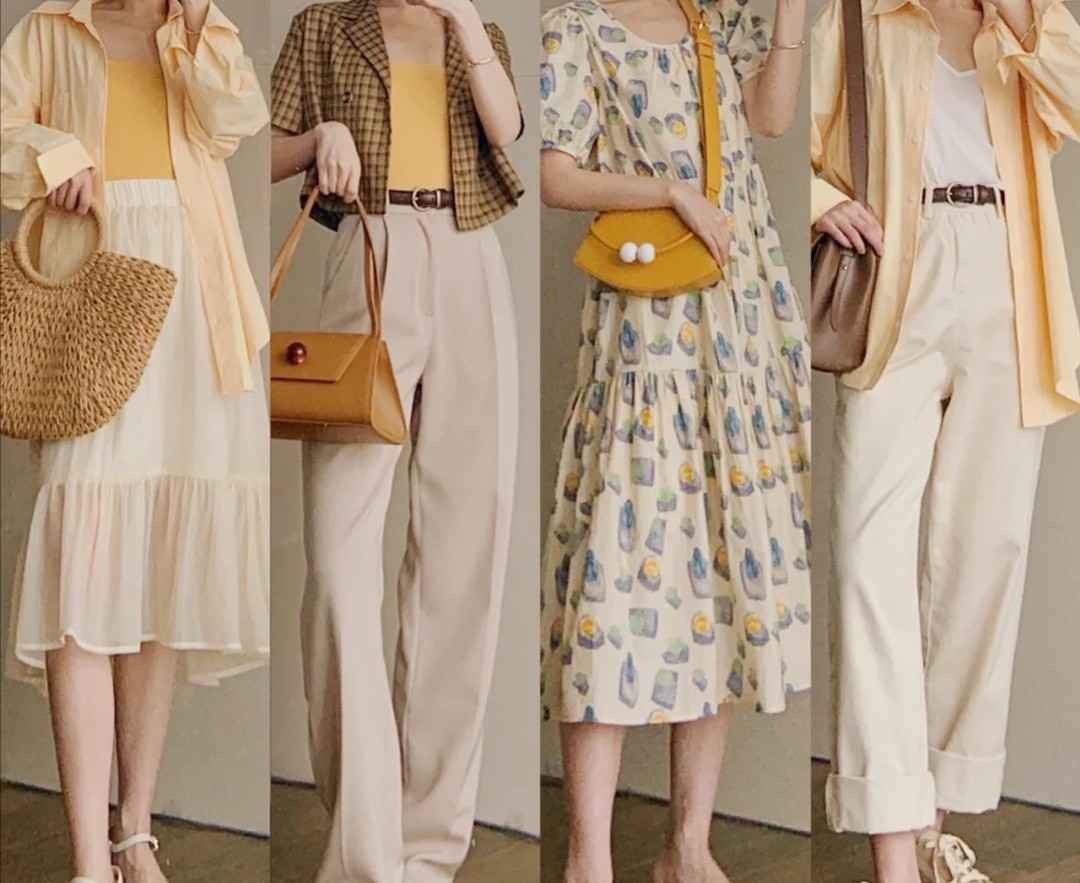 元气感满满的色彩不能少,柔和黄色单品就是首选。用过膝半身裙遮肉显瘦,穿搭零压力。但配色要谨慎,选低调色系组合,才能穿出高级感。