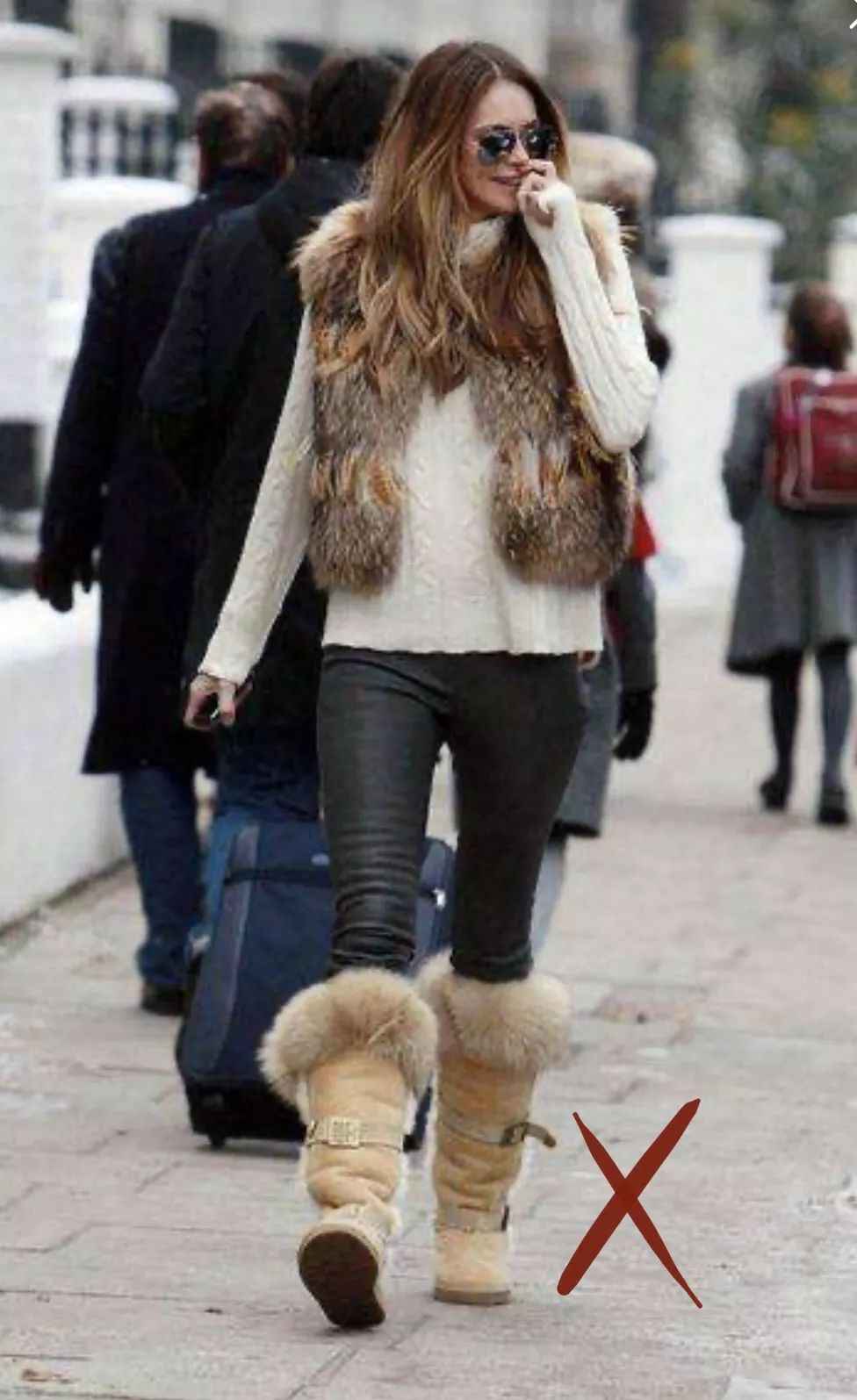 对了,上身也要尽量简洁!UGG搭配皮草那种复杂风格已经过时了,别再尝试了。还有,UGG本身别选太花哨的哦!