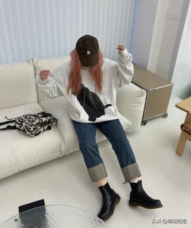 身材干瘪的女生可以穿厚点,加厚裤子和短靴适合秋冬,配上面包服,可爱又减龄。