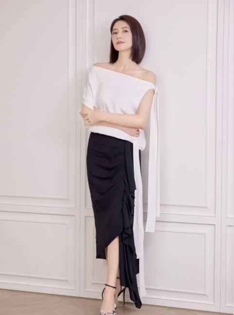 高圆圆不愧是“女神”,身穿灯笼袖上衣+缎面裙,气质优雅又高级