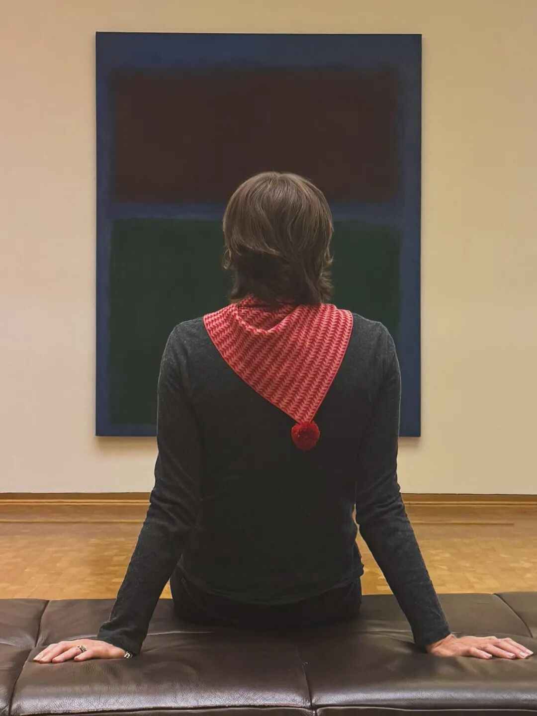 除了纯色,彩色条纹三角巾也是玩撞色的好手,很多品牌都有出。像这种浅红加深红的搭配,可以当红色系来用。乌克兰品牌Eedere Editions这条用100%美丽奴羊毛,官网参考价约826元。▼
