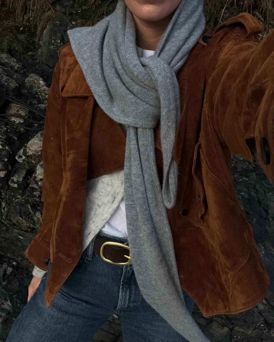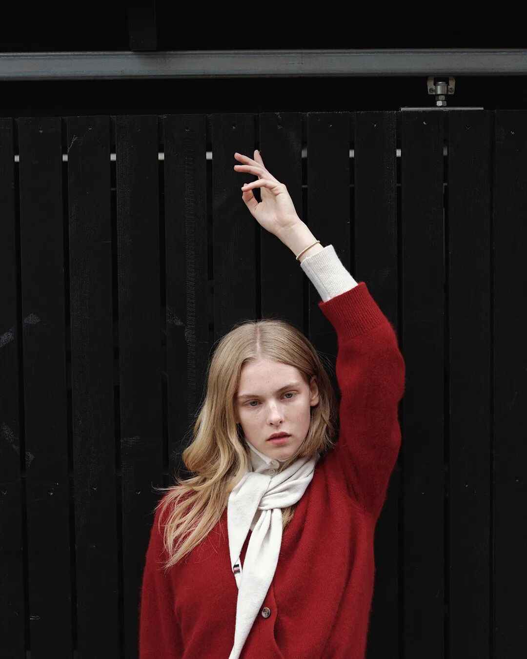 混纺材质也不错。博主Jessica Skye戴的这条来自英国品牌Rise&Fall,70%美利奴羊毛+30%蒙古羊绒,官网参考价890元。▼