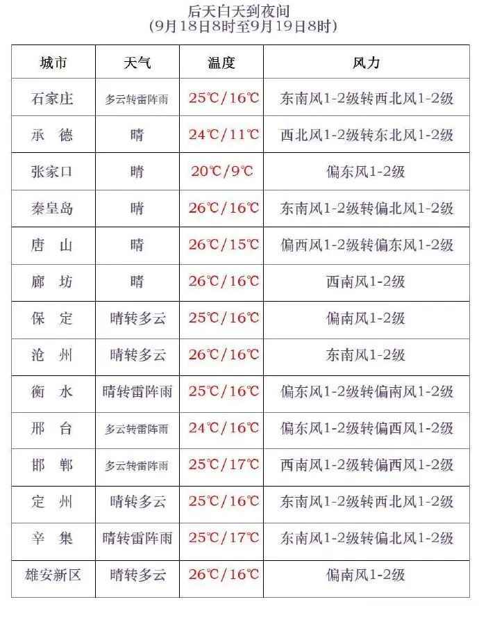 明天夜间到18日,保定西部、石家庄、邢台、邯郸晴转多云,其他地区晴间多云。