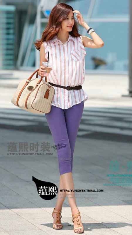 @微胖梨形身材: 我是梨形身材,大腿和臀部肉比较多,怎么穿紫色裤子才能显瘦又好看?