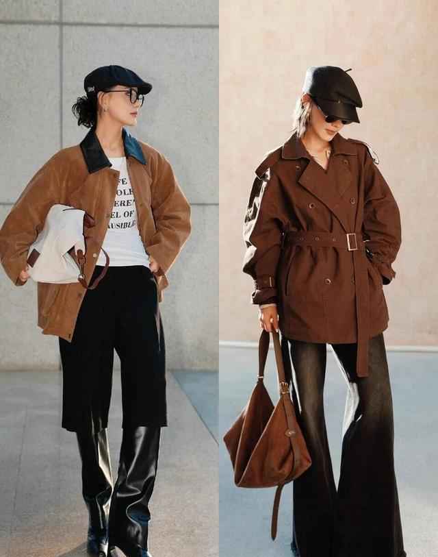 棕色系穿搭真绝了!复古酷飒范儿,风衣毛衣轻松出街
