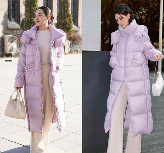 地域不同,选择也略有差异:北方建议选绒毛多的,200克以上,暖意十足;南方可以走轻盈路线,薄呢白裤也能应付温差。