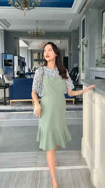 这时候肚子还不明显,但腰身已经开始悄悄变化。穿紧身裤可能会觉得有点勒了。最好的选择是那些腰线在胸下的宽松连衣裙,或者是中长款的西装外套-6。一条飘逸的A字裙或宽松的衬衫裙,既能巧妙掩饰微微隆起的小腹,又能保持十足的优雅和轻松感,别人完全看不出来,只觉得你穿得很有范儿。