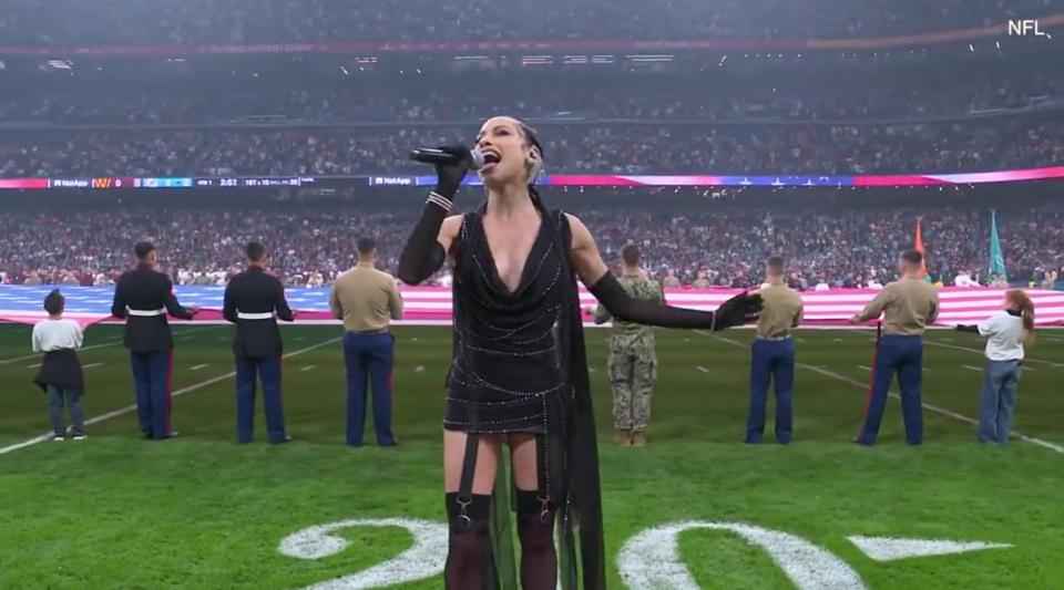 还有网友评论:“她的嗓音太有感染力了,跨洋而来……”“这场比赛意义重大,她的演唱也是经典!她做到了!”“看到她在马德里这么受关注,真让人兴奋,这毕竟是首场在西班牙办的美式橄榄球赛!”